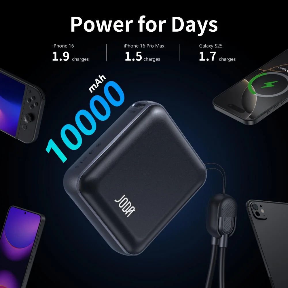 JODA Metix 10 10000mAh 22.5W Power Bank with USB-C Cable Black