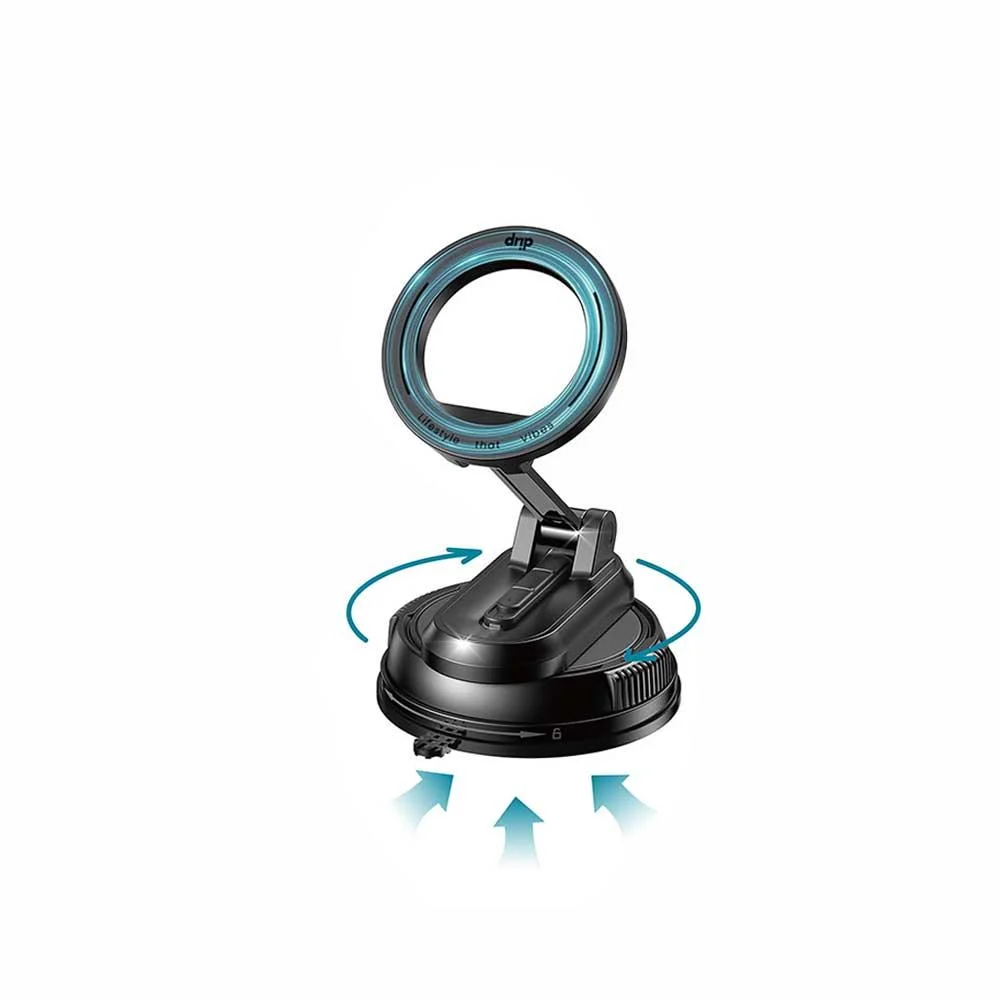 Drip 360° Rotatable & Foldable Magnetic Car Phone Mount with Removable Base Black